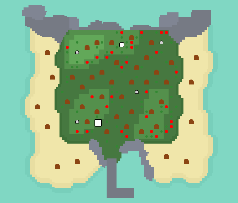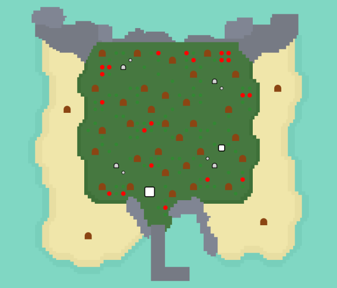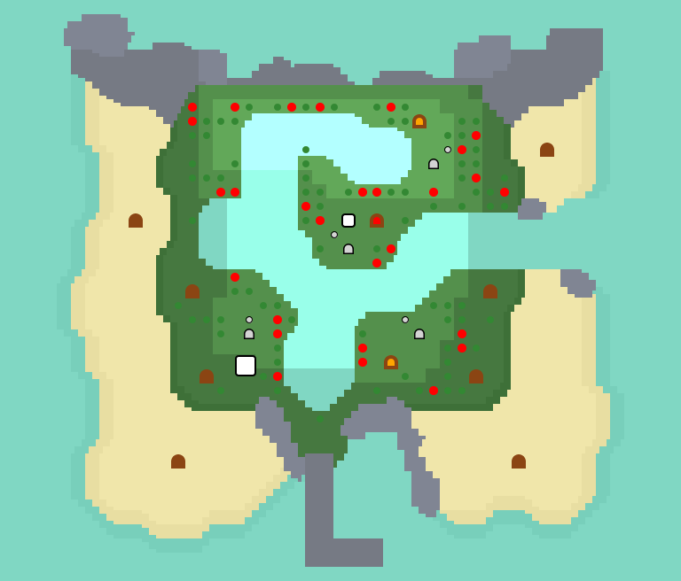На этом острове не будет ничего, кроме ёлок (кедров), но на них также можно половить древесных насекомых и с помощью топора нарубить себе древесины.